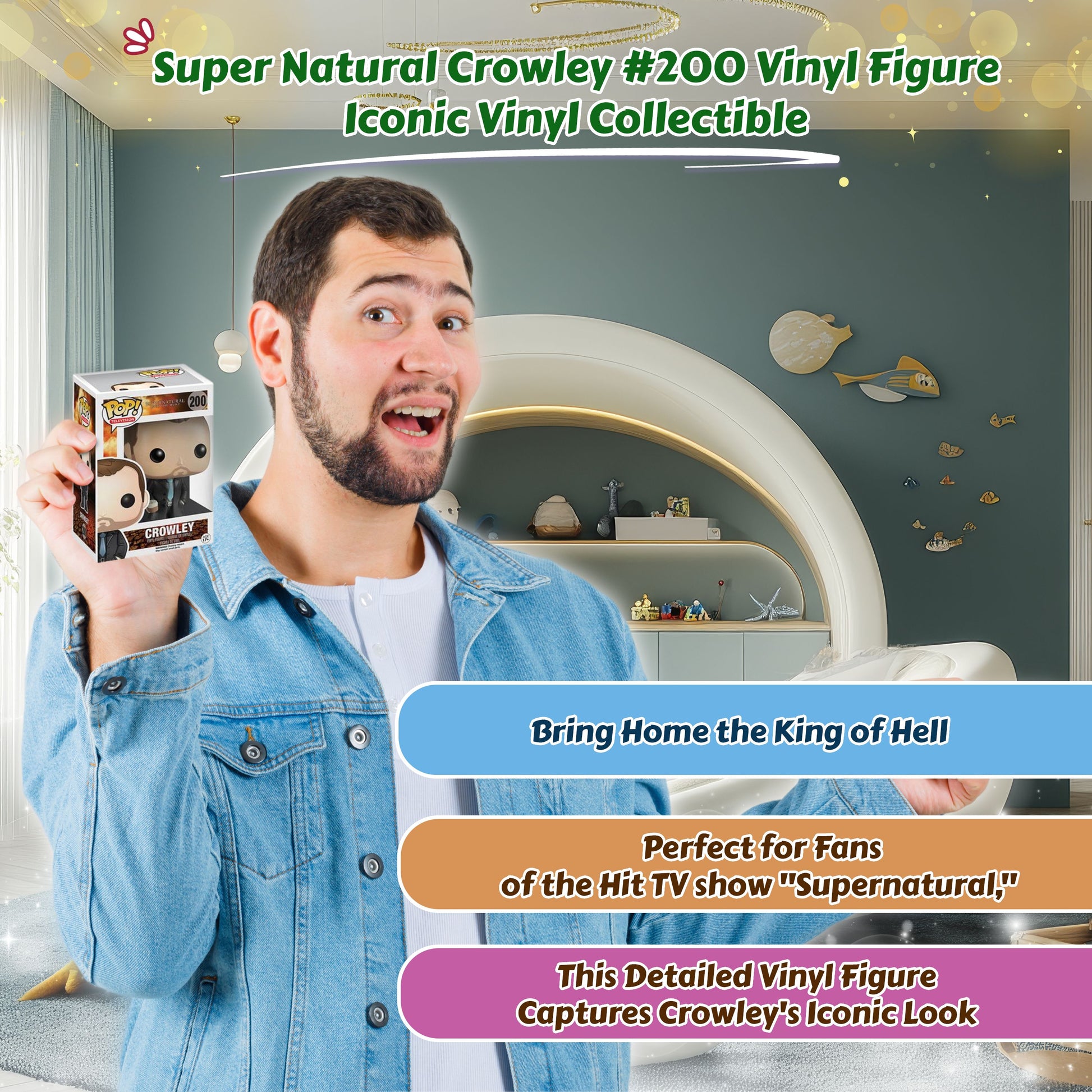 🎬 Enhance Your Collection: Expand your Supernatural collection with this Crowley #200 figure. Pair it with other characters from the series to complete your Funko lineup and relive your favorite moments from the show.