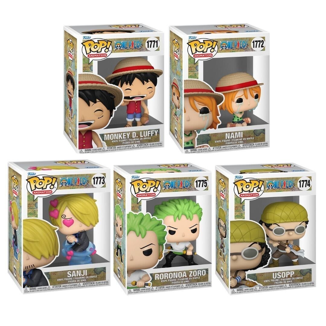 The figures come in their original packaging, unopened and ready for display. This exclusive Funko bundle is perfect for collectors and fans alike, and is sure to be a standout addition to any collection. Don't miss out on the chance to own this amazing piece of One Piece memorabilia.