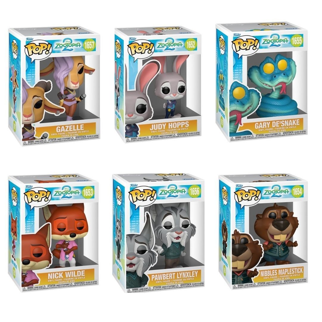 Zootopia 2 Funko Pop! Set of 6 (Pawbert Lynxley #1656, Maplestick #1654, Gary De Snake #1655, Gazelle #1657, Nick Wilde #1653, and Judy Hopps #1652) Collectible Vinyl Figures - Estimated Arrival: Oct 2025 (PRE-SALE)