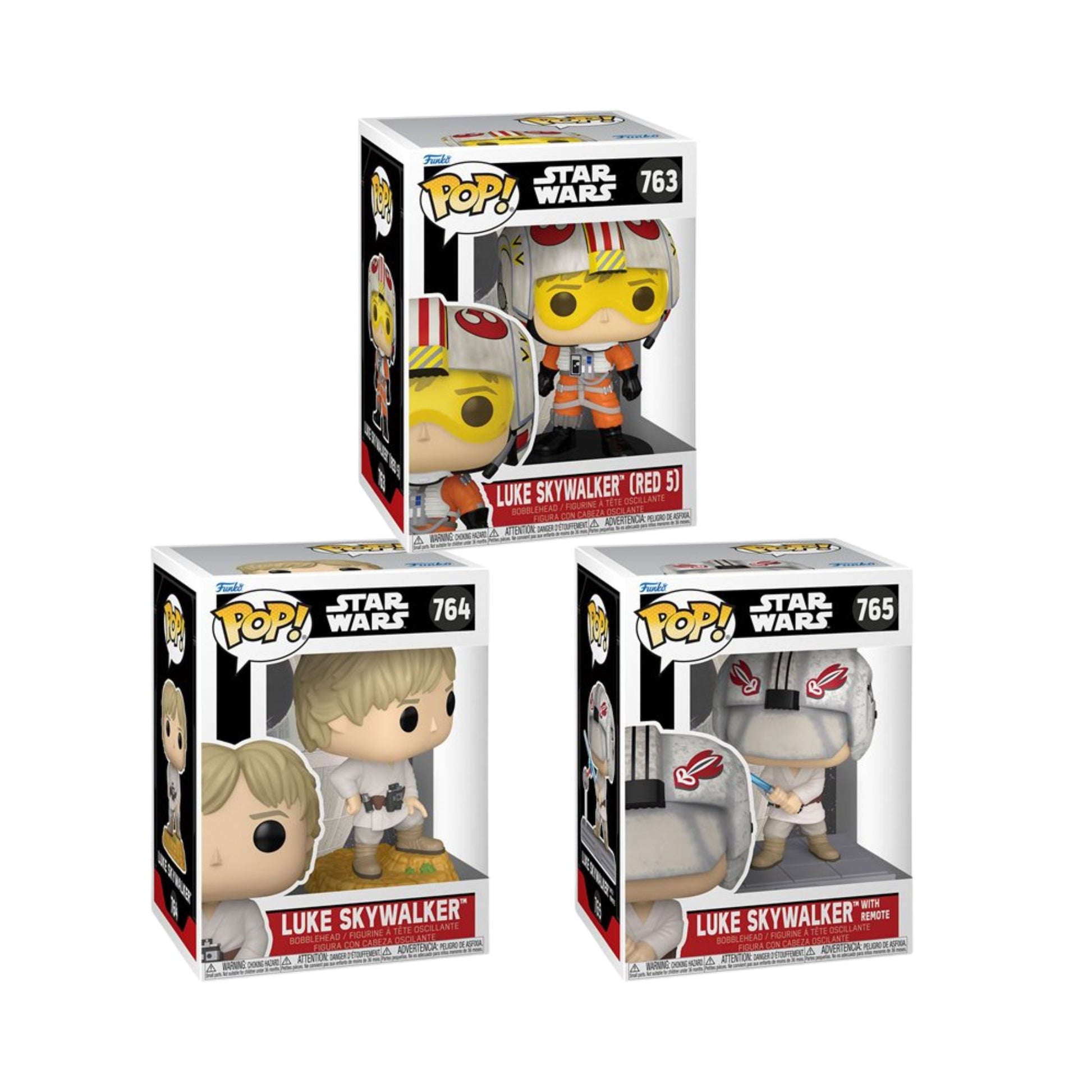 Star Wars Funko Pop! Wave 9 - Set of 3 (Luke Skywalker with Remote #765, Luke Skywalker #764, and Luke Skywalker (Red 5) #763) Collectible Bobblehead Figures