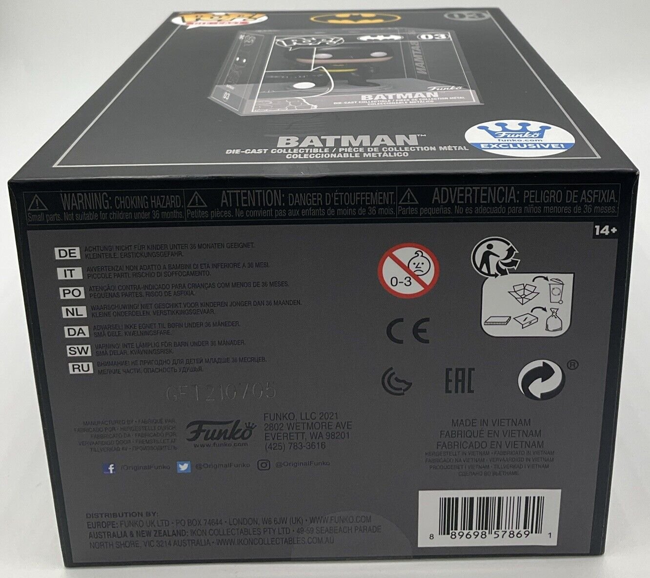 Add this exclusive Funko Pop! Vinyl figure of Batman to your collection today. This Diecast S1 series figure is part of the DC Universe franchise and features the iconic superhero in his classic suit. The box number is 03 and it is still sealed, making it the perfect addition for collectors who want to keep their figures fresh.