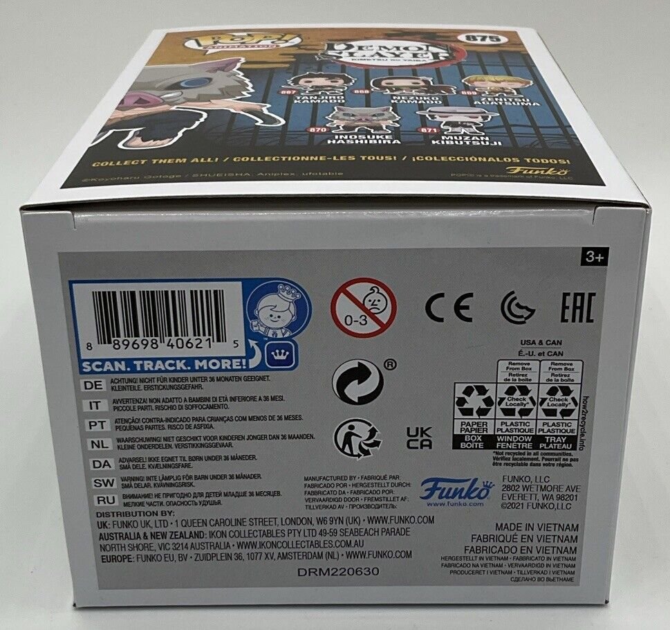 This Funko Pop! Vinyl figure is a must-have for any Demon Slayer fan. Featuring Inosuke Hashibira, this figure is part of the Pop! Vinyl series and comes in box number 875. It is made of vinyl material and has a flocked texture, making it a unique and exclusive addition to any collection.