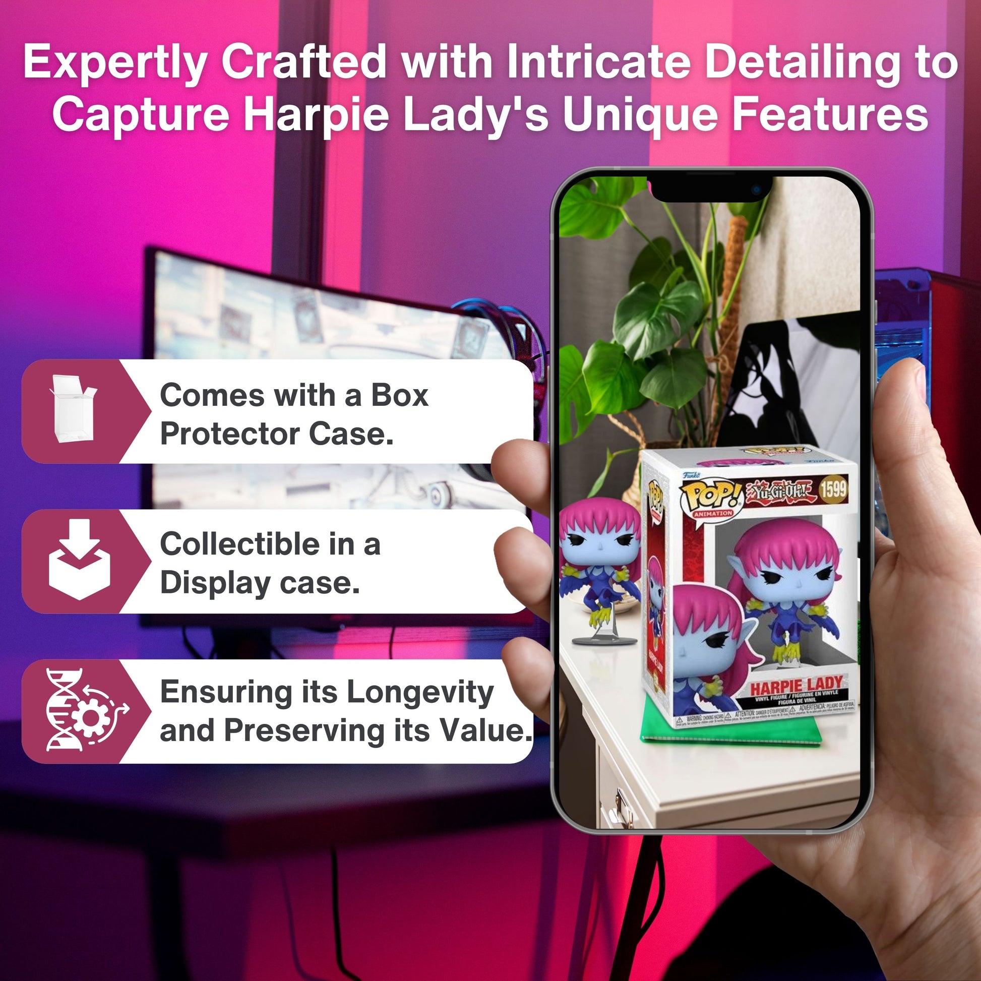 Elevate your collection with the Funko Yu-Gi-Oh! Harpie Lady figure, a stunning tribute to one of the most iconic characters from the beloved anime series. This meticulously crafted figure captures the essence of Harpie Lady, showcasing her dynamic presence and intricate design details that fans will instantly recognize and appreciate. The Funko Harpie Lady figure is an essential addition for any Yu-Gi-Oh! enthusiast. Whether you're a dedicated collector of Funko figures or a fan of the series, this figure brings the magic of Yu-Gi-Oh! into your home. Its vibrant colors and authentic design make it a standout piece that will enhance any display. Every aspect of Harpie Lady is carefully rendered, from her striking wings to her fierce expression. The attention to detail ensures that this figure faithfully represents the character, making it a cherished item for fans and collectors alike. The dynamic pose adds an element of action and energy, capturing the spirit of the character perfectly. Looking for a thoughtful gift for a Yu-Gi-Oh! fan? The Funko Harpie Lady figure is an excellent choice. Whether it's for a birthday, holiday, or special occasion, this figure is sure to delight fans of all ages. Its appeal spans across generations, making it a versatile gift for anyone who loves anime and collectibles. The Funko Harpie Lady figure comes in a specially designed window display box, ensuring that it remains in pristine condition while allowing collectors to admire it without needing to open the package. This packaging not only protects the figure but also adds to its collectible value, making it a prized addition to your Funko collection. Bring the excitement of Yu-Gi-Oh! into your home with the Funko Harpie Lady figure. Whether you're a seasoned collector or a new fan, this figure offers a perfect blend of quality, detail, and nostalgic appeal. Add it to your collection today and celebrate the timeless magic of Yu-Gi-Oh!