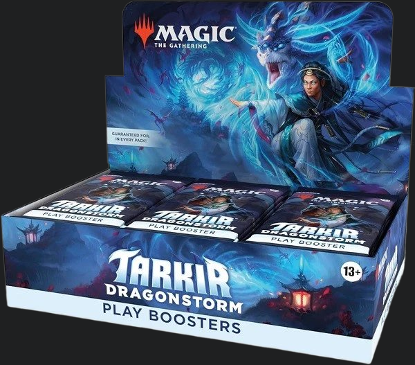 The Magic The Gathering: Tarkir Dragonstorm Play Booster Box is a collectible product featuring cards from the popular Magic: The Gathering franchise. Produced by Wizards of the Coast (WOTC), this booster box contains a selection of cards that players can use to enhance their gameplay experience. With exclusive Tarkir Dragonstorm content, this product appeals to fans of the game who enjoy collecting and trading cards to build powerful decks and compete against one another.