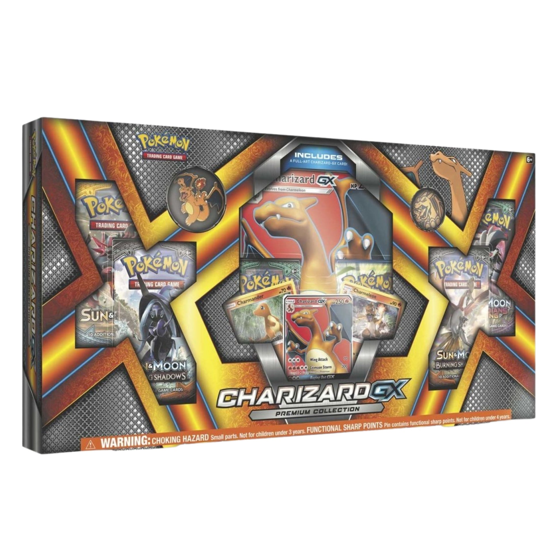 Bring the heat to your collection with the Pokémon TCG Charizard GX Premium Collection Box. This fiery set features the iconic Charizard GX, showcasing one of the most powerful and beloved Pokémon. Packed with multiple booster packs, rare promo cards, and collector’s items, it’s designed for both competitive players and collectors who want to expand their Pokémon TCG lineup with premium cards and sealed Pokémon booster packs.