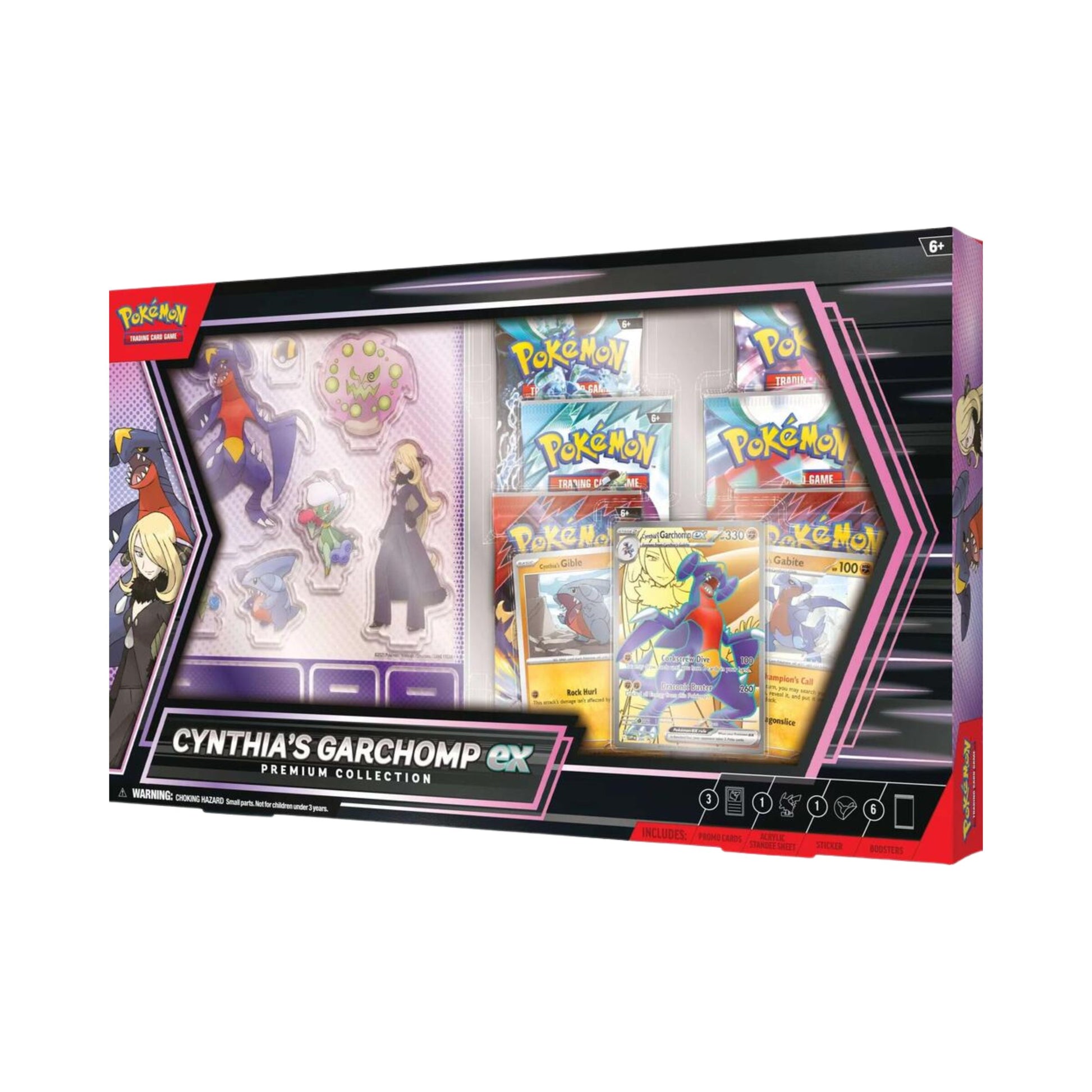 The Pokémon TCG Cynthia's Garchomp ex Premium Collection highlights one of the most iconic Trainer–Pokémon pairs. Featuring powerful Garchomp ex promo cards and booster packs Pokémon collectors enjoy, this collection is perfect for building your deck or expanding your Pokémon card collection. With sealed Pokémon cards and exclusive extras, it’s a must-have for players and fans of the Pokémon trading card game.