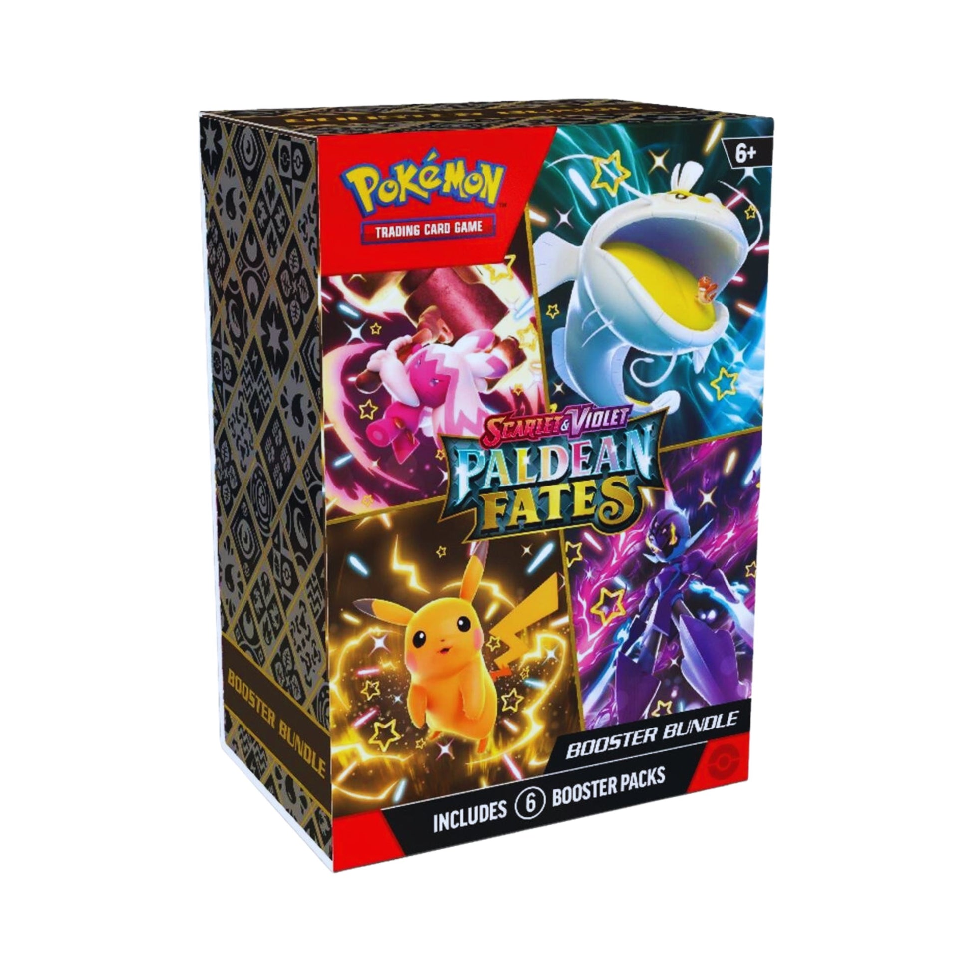 Expand your adventure in the Paldea region with the Pokémon TCG Scarlet & Violet Paldean Fates Booster Bundle! Perfect for fans of the Pokémon game, collectors, and competitive players alike, this bundle includes 6 sealed booster packs filled with surprises.
