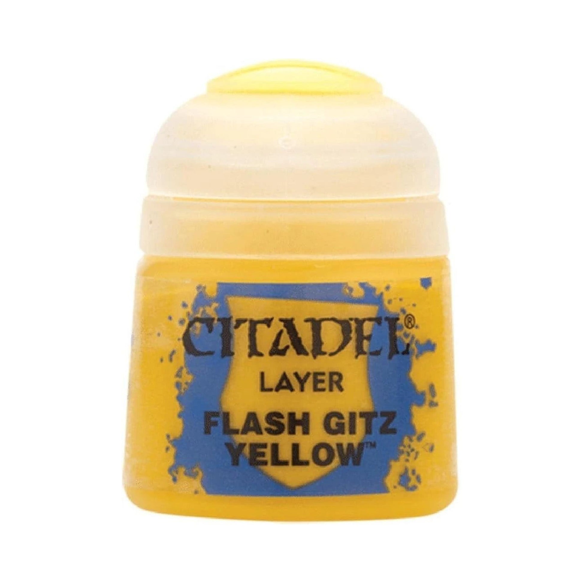 The Warhammer Citadel Base Flash Gitz Yellow Paint Bottle is a 12ml layer paint designed for Warhammer 40K enthusiasts. Produced by the reputable brand Citadel, this paint is specifically formulated for layering and detailing miniatures. With a vibrant yellow hue, this paint is perfect for adding color and depth to your Warhammer miniatures, making it a valuable addition to any Warhammer collection. This paint is sure to enhance your gaming experience and bring your miniatures to life on the tabletop battlefield.
